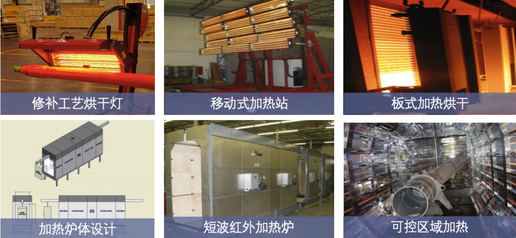 根据不同的客户需求,我们提供定制化的短波红外解决方案。如针对修补工位的移动式短波红外加热设备、针对离线式加热的短波红外