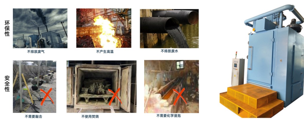 在清理涂装挂具的过程中,不会产生废水、废气、废热,对人员以及环境非常友好。